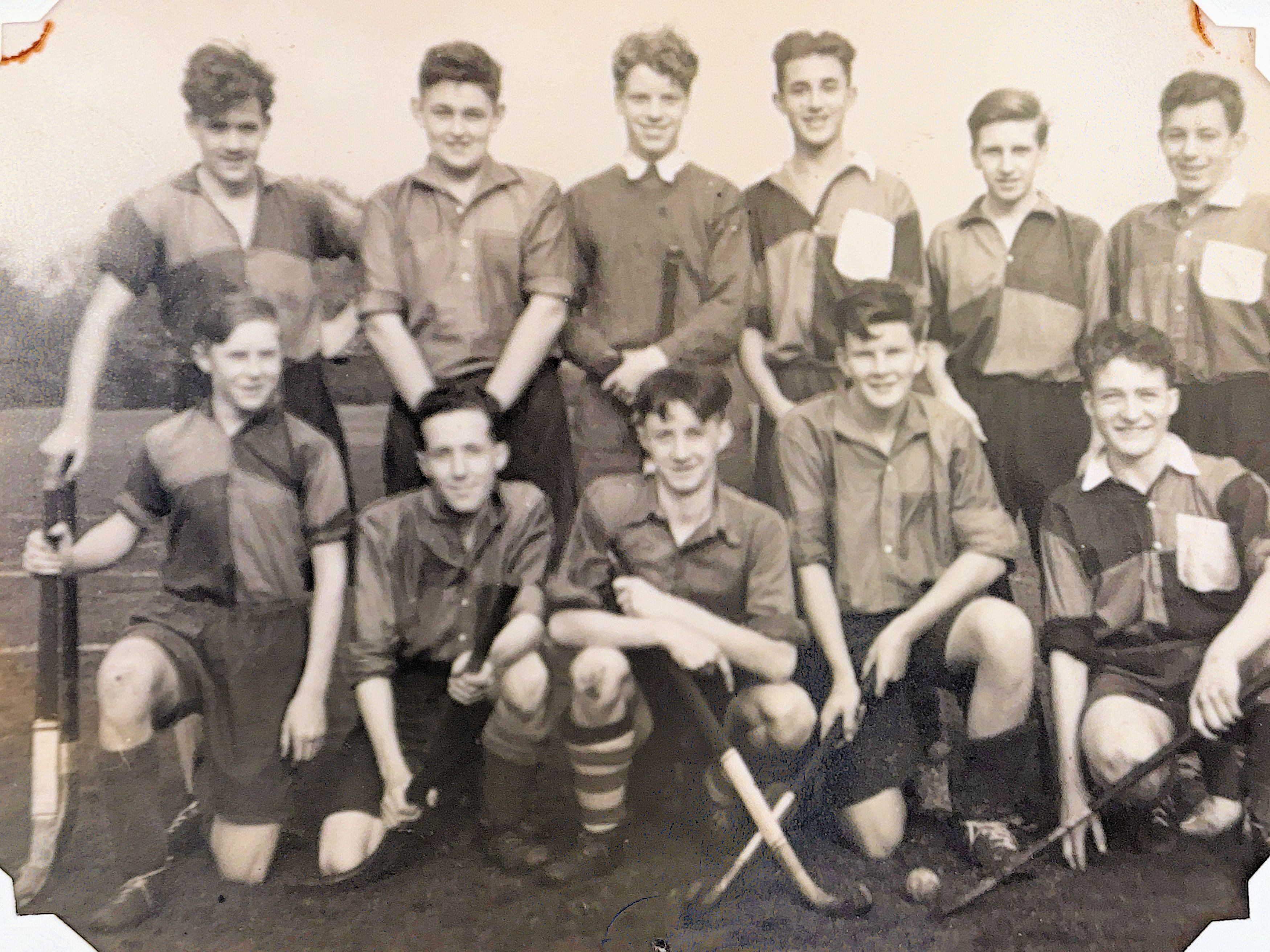 Front row (left to right): Photo provided by Ken AshcroftKen Ashcroft writes:EVERYTHING was organised by Arnie Cummins (glasses). There was no such thing as a fixture list, it was more of a bush telegraph thing - Arnie would somehow find us on Friday, and say, "9 o'clock at Mersey Road", or "7:30 at Central Station." Of course, all bus and train fares were self-financed. I think we played some men's teams, too, as well as boys. It was all very impromptu. Several of us had no idea what the game was about - I'd never even seen it played - Arnie explained briefly on the first morning. Training sessions? Yerwo? Close inspection shows that, not only are there insufficient jerseys to go round, the ones we have do not all match - some have the squares reversed. Socks and boots don't match either, and all the sticks are of pre-war vintage, save that of the captain. I only helped Arnie because he was such a cuddly teddy-bear-type chap, and I had mornings free on Saturday before playing Rugby League for Old Swan. Funny thing was, I abandoned rugby a couple of years later, but continued with hockey for another two decades. Can't even remember all the names - Eddie Butler - grinning, back row. Met him playing for West Derby years later. Ronnie McDade - ace Mathematician, became a teacher or perhaps even a professor somewhere. The lad at front left ( tough little nut), was a super nice guy called Harry Spencer, we were both in Nicky's class. (Also used to go on long bike rides together - him on his fancy Claud Butler.) We parted company in 1958, me for first year at Liverpool, he to the lab at British Enka. His study habits flourished as mine atrophied. We were reunited when he got direct entry to second year chemistry, where he outperformed me by a mile. Ended up with a Ph.D., then went to Saskatchewan, and I've never heard of him since. The two teachers, Wray and Axon, were total strangers to me, and they vanished again as soon as the camera shutter clicked. All jolly fun but I can't remember anything about the games. (Did the results really count in the grand scheme of things?) Often wonder what happened to Arnie. Being the kind of chap he was, he's probably President of Oxfam by now! Dave Brown writes:The Dave Baron in the second XI photograph isn't in fact Dave Baron, who was in the first XI, but me David Brown at the start of my hockey career. Later playing for Lancashire Boys and then Derbyshire and Yorkshire County Hockey. In the white shirt is Ken Donally. The white shirt is not because of a shortage but he was a volunteer occasional keeper. |